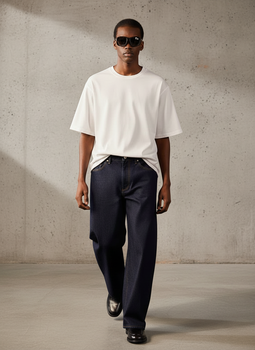 Men's Curved Leg Denim Jeans Blue - Fashion Loose Fit Pants