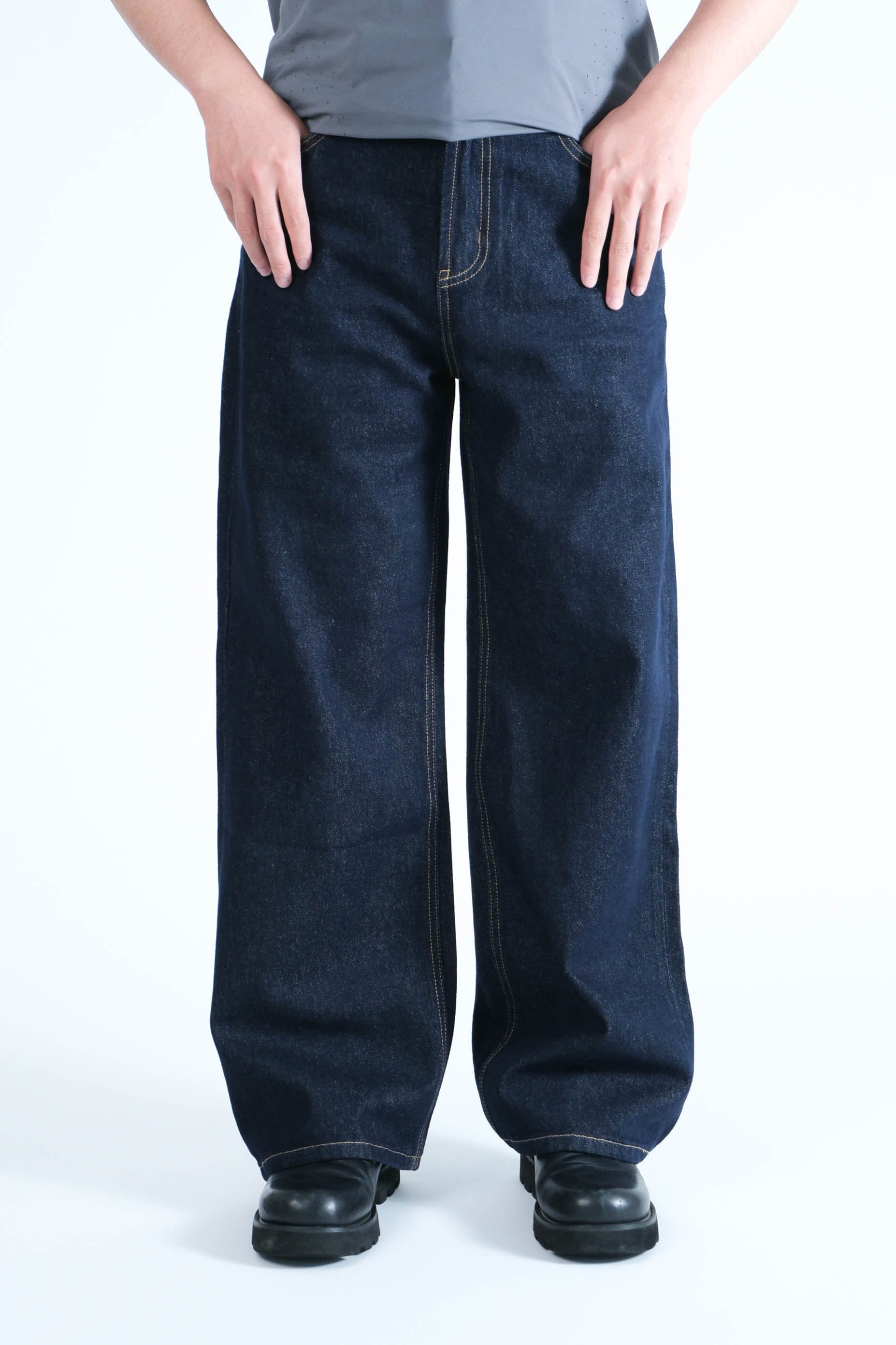 Double-needle stitching runs down the outseam and around the hem, ensuring the edges stay crisp and resist fraying,dark denim