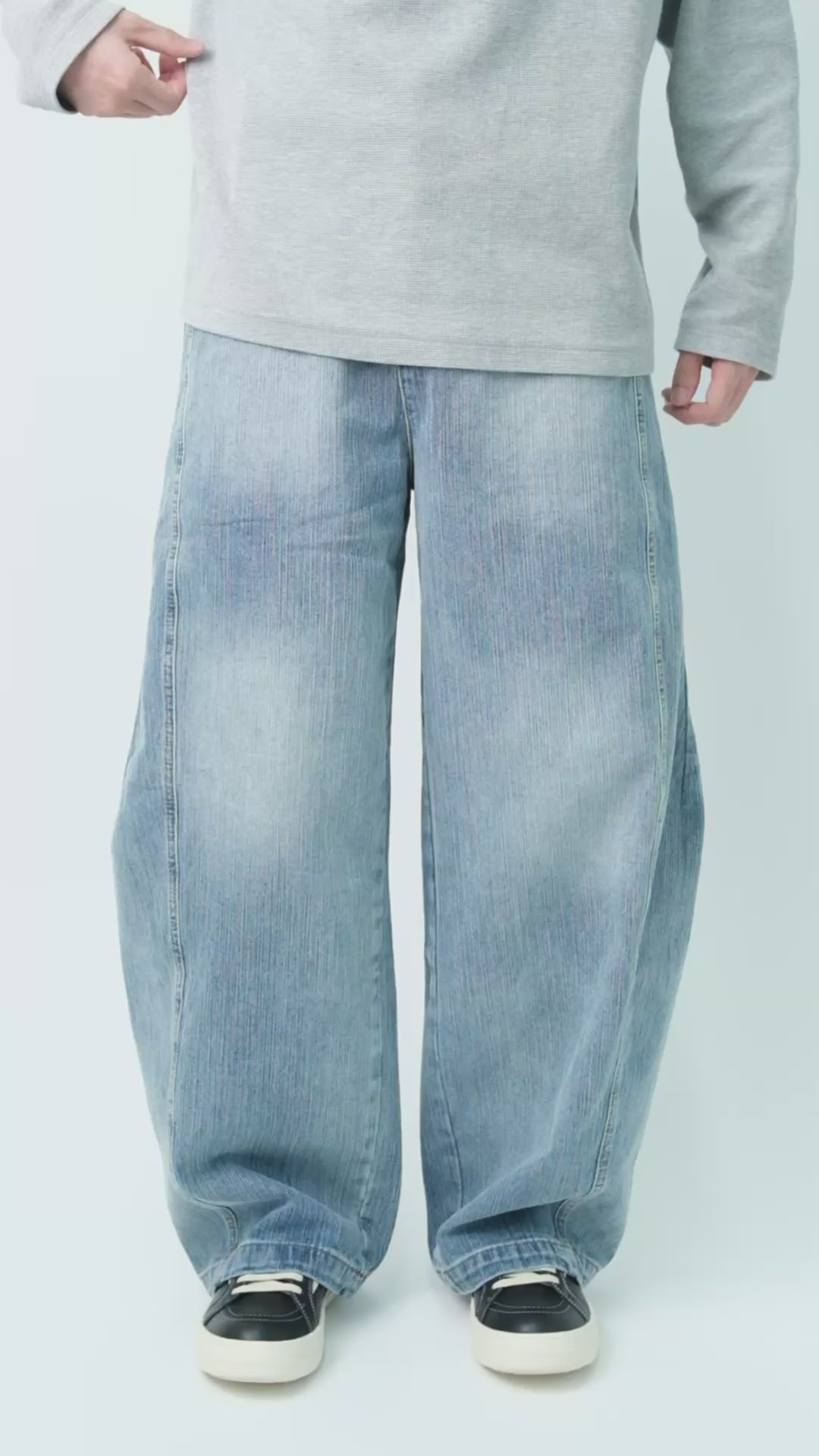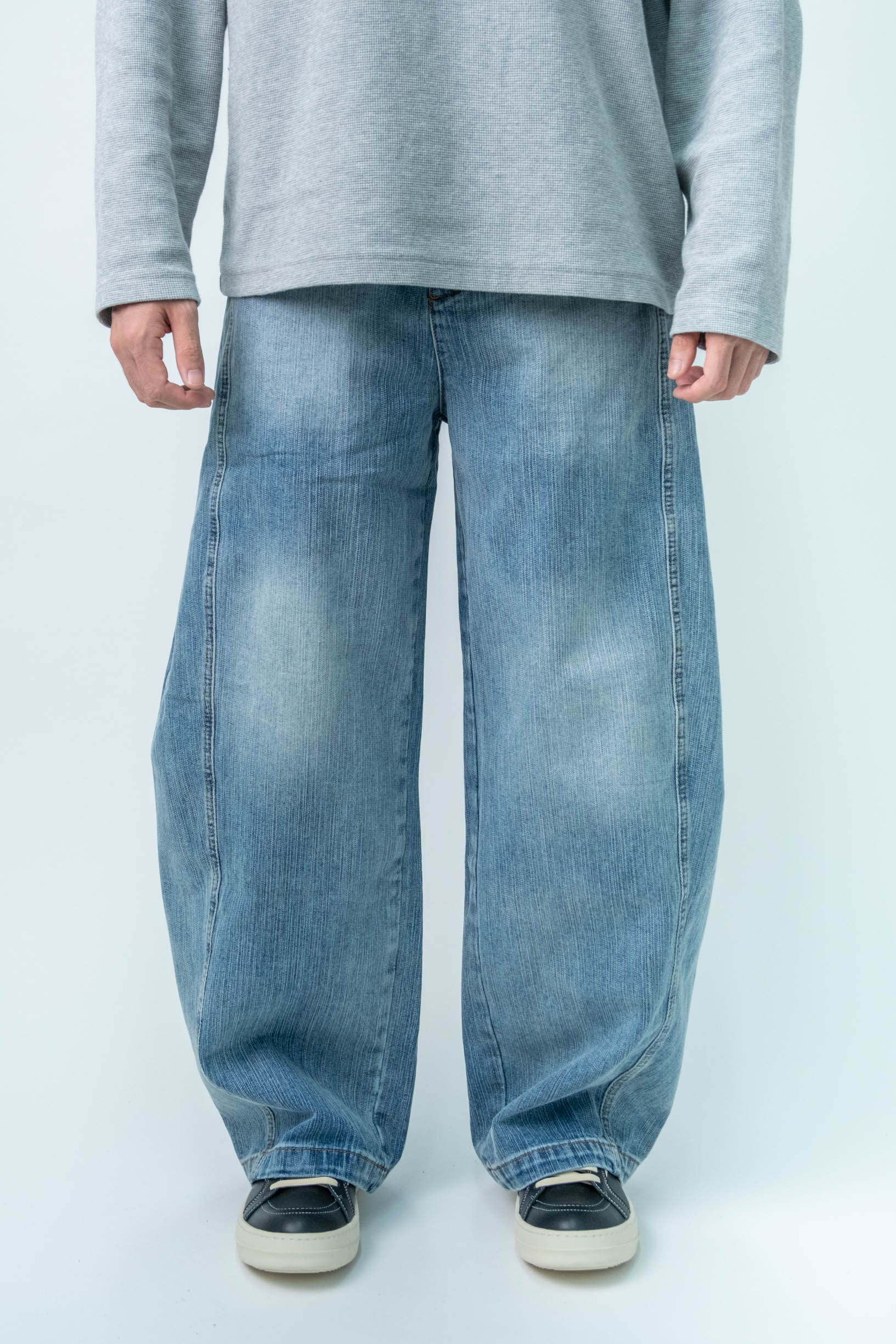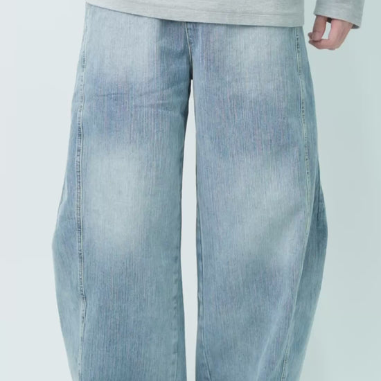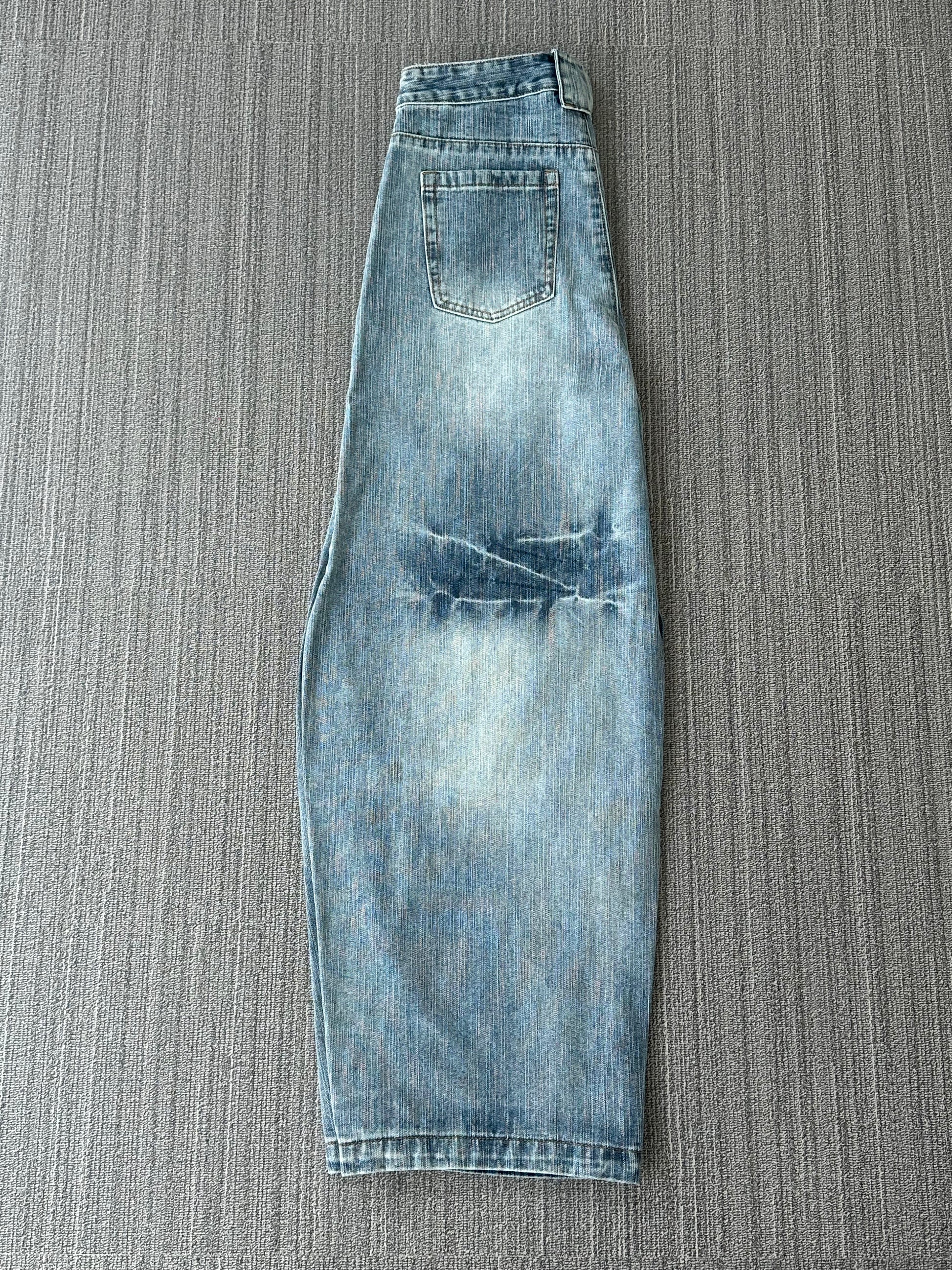 Men's Curved Leg Vintage Wash Denim Jeans - Retro High Street Pants